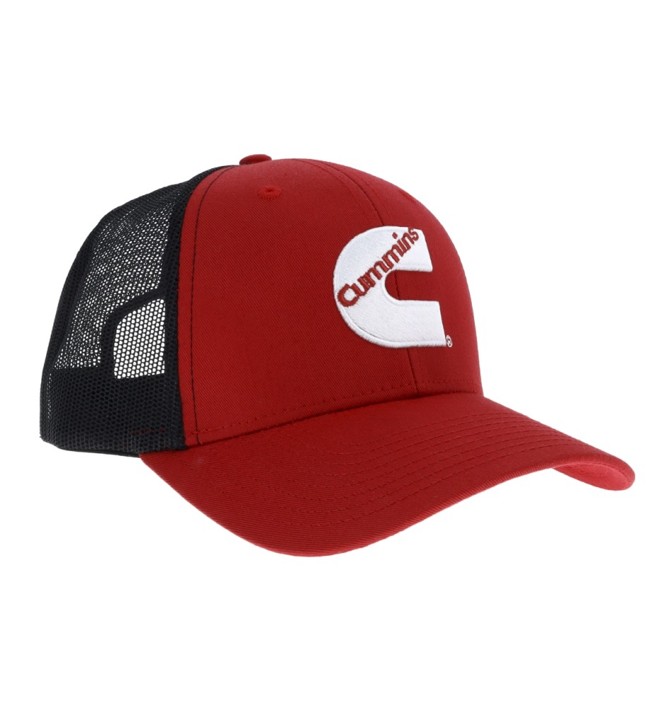 Looking for a quality trucker snapback hat that will hold its shape well - Look no further than the red Cummins Trucker Hat. This low-profile trucker hat has a lower crown to fit your head in comfort. No worries about an overheated head with its mesh backing to allow ventilation. The baseball cap bill needs little adjustment and retains the ideal curve for a comfortable fit that looks great and still blocks the sun. This is a quality trucker snapback hat that holds its shape well. The snap back is adjustable to suit any size. Unisex design. This Cummins ball cap for men or women is an officially licensed Cummins product great for diesel fans. A nice blend of woven 35 percent cotton and 65 percent polyester so you will be able to keep it clean with little effort. A great gift idea for Cummins engines fans (or for yourself). The logo is embroidered and nicely displayed on the cap front. A functional and fashionable red baseball cap for sale that can be worn in comfort through any season.