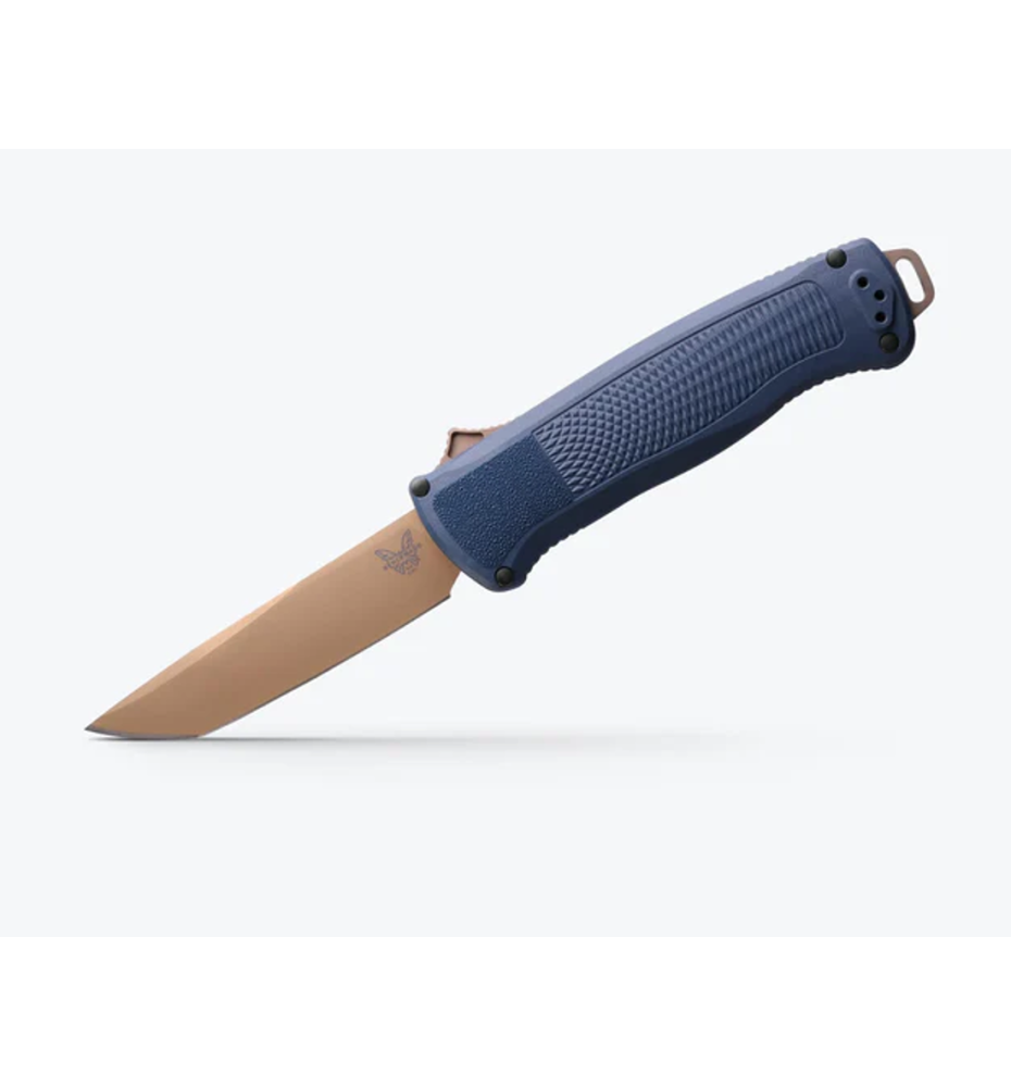 The Shootout® was arguably 2022’s most exciting Benchmade debut, so when fans asked us for more color options, we got to work. New for 2023, the 5370FE-01 and 5370FE-02 retain the Flat Dark Earth CPM-CruWear® blade—as well as its exceptional strength and toughness—and exchanges the original black handle for Crater Blue and Cool Gray Grivory® with a new lanyard pommel in place of the glass breaker of its predecessor. Powered by the spine-fired release, the Shootout® is a double-action out-the-front automatic that truly packs a punch and carries light