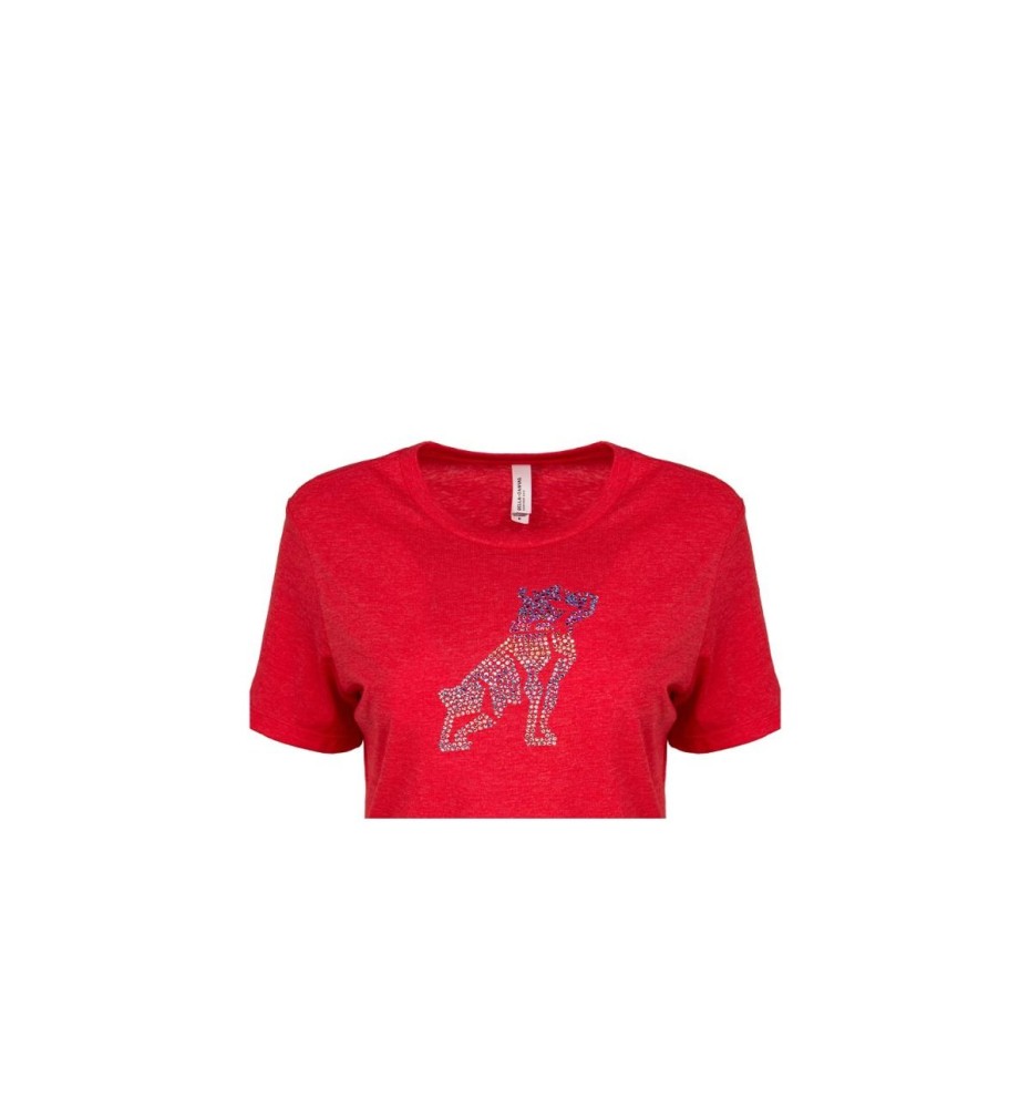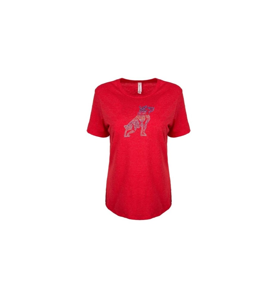 Tags: Ladies, Red, Sequin, Bulldog, T-shirt