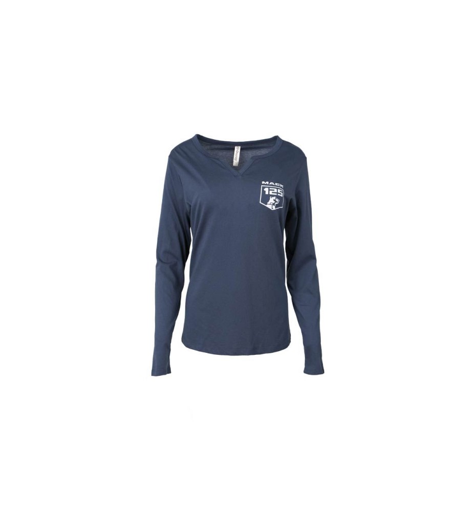 Ladies Spring Navy Long Sleeve Notch Neck Shirt