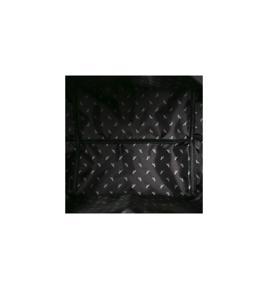 14"x19"x9" 600 D Polyester bag with zippered pockets and interior slash pockets. Step and repeat Bulldog symbol on interior lining with PVC Bulldog zipper pull.
