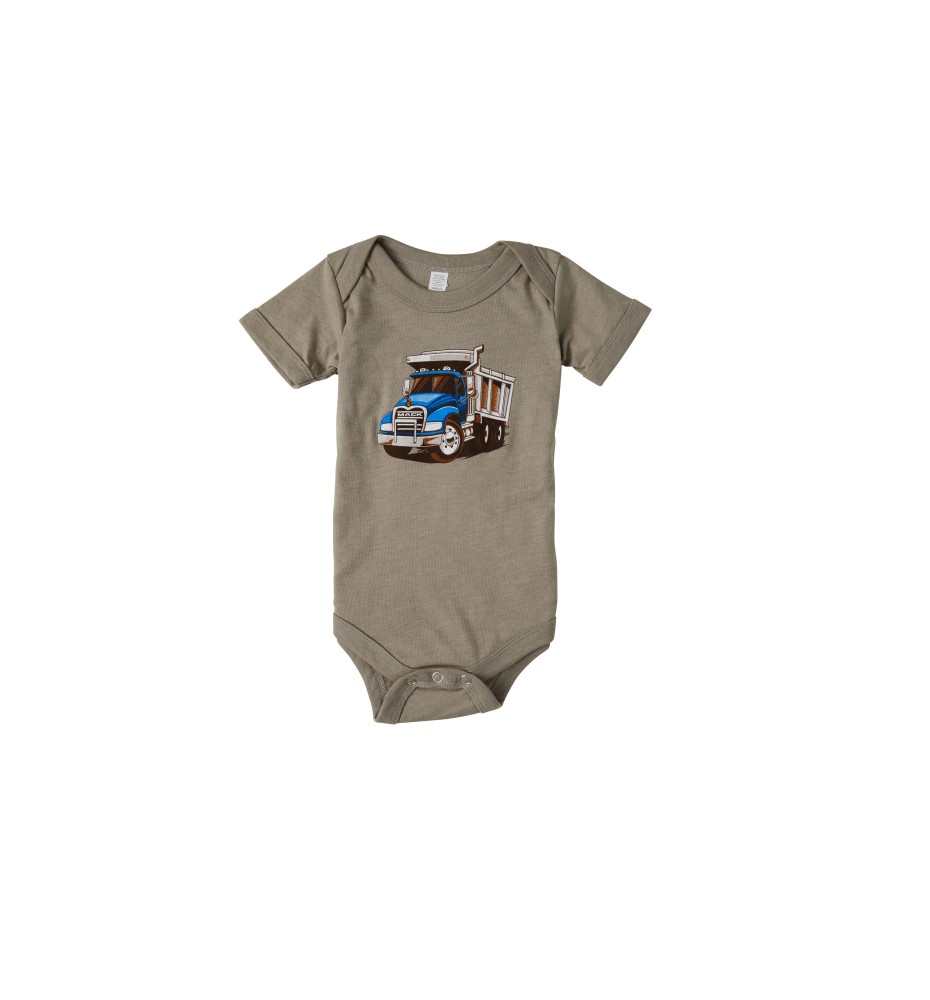 Let your little one showcase their Mack pride from an early age with this Mack Granite Grey Onesie. Made of a comfortable blend of cotton and polyester, this onesie features the iconic Mack Granite truck on the front. Officially licensed merchandise of Mack Trucks, Inc.