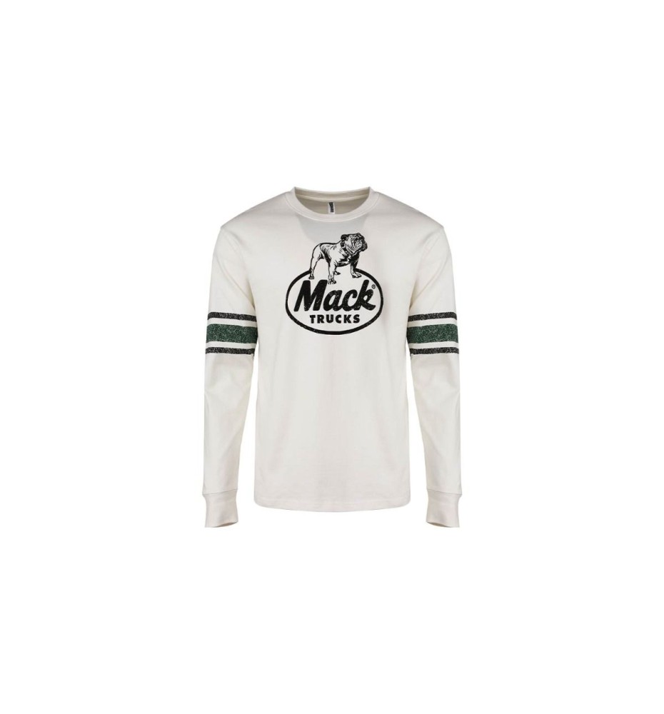 Our new retro-inspired heavyweight crew features the retro Mack logo and an archive-style printed sleeve stripe.100% cotton, relaxed fit 8.0 oz. antique white cotton jersey with side splits.