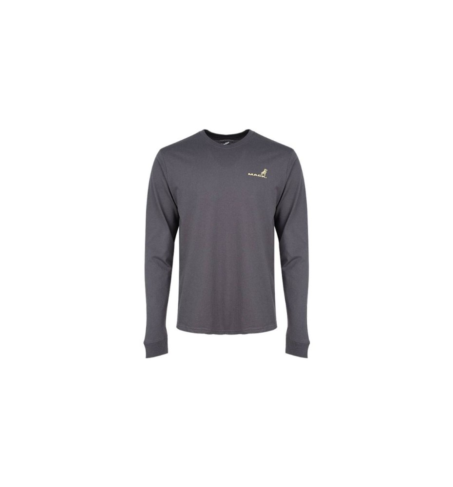 Our Grey reactive dyed tee has a laid-back look and feel. Finished with a unique enzyme wash, this 100% cotton long sleeve cotton tee has a well-worn feel and will be a well-loved addition to your Mack tee collection.