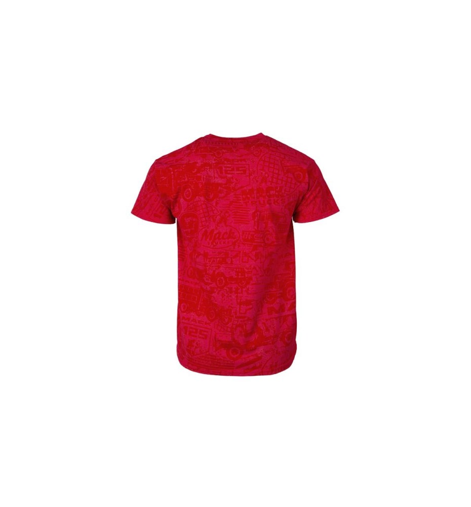 Go old-school Mack with a new all-over print short sleeve t-shirt. Our new t-shirt features an all-over monochromatic image absorbed into the fabric. The historic tonal Mack images on the garment are semi translucent so that the design bonds with the cotton t-shirt for a butter-soft hand with an inherent weathered, distressed look and feel. This process naturally breeds individuality piece to piece. No two are exactly the same.