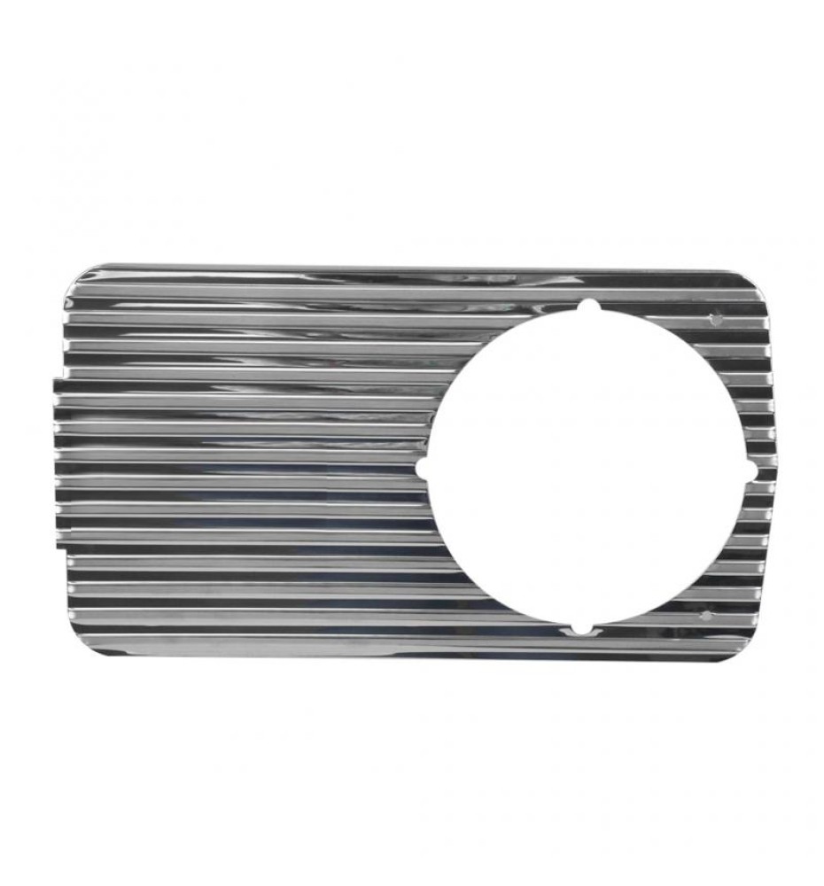R-Model headlight bezel fits left or right R-Model old style square hoods...it has a tab mount on one side and 2 screw holes on the other. No cutouts for engine heater plug.